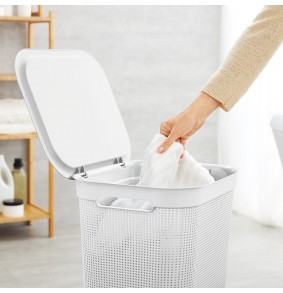 21,79 €50 litrų talpos skalbinių krepšys su dangčiu kvapams sulaikyti ir patogia pakabos anga. -