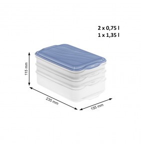 Maisto Saugojimo Indas - ROTHO Rondo 2x0.75L, 1x1.35L Mėlynas