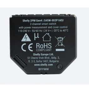 47,49 €Shelly 2PM Gen4 yra dviejų kanalų WiFi relė, leidžianti nuotoliniu būdu valdyti prietaisus ir matuoti energiją. Ji turi apsaugą nuo perkaitimo, palaiko scenarijus ir veikia temperatūros diapazone nuo -20 iki 40 °C. -