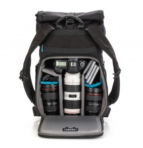 139,49 €Tenba Fulton v2 16L juodas fotoaparato kuprinė skirta laikyti veidrodinį arba DSLR fotoaparatą su 5-7 objektyvais bei nešiojamąjį kompiuterį iki 16 colių. Ji pasižymi ritininio tipo dizainu, leidžiančiu praplėsti erdvę, saugiu užpakaliniu prieigos tašku į įrangą ir sustiprintomis kišenėmis trikojams ar monopodams. -