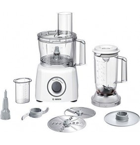 108,19 €Bosch MCM3200W maisto smulkintuvas turi 800 W variklį ir 2,3 L talpos dubenį. Jame yra kintamo greičio valdymas, trys diskai, taip pat nerūdijančio plieno peilis, mini smulkintuvas ir trintuvo antgalis.