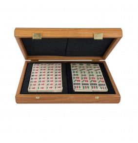 97,09 €Mahjong rinkinys apima aukštos kokybės plyteles, pagamintas iš akrilo/rezino kompozito, supakuotas į riešutmedžio medžio dėžutę su aksominiu interjeru. Dėžutės matmenys yra 24x17 cm, o domino plytelių dydis – 5,2x2,7x1 cm, svoris apie 3,5 kg.