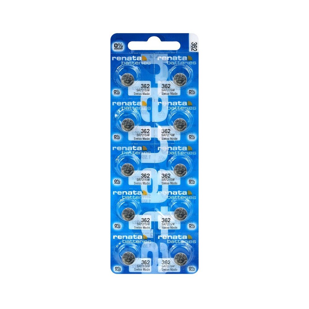 Renata 362 (SR721SW) baterijos tiekiamos 10 vnt. pakuotėje. Kiekvienos baterijos galiojimo laikas yra 5 metai.