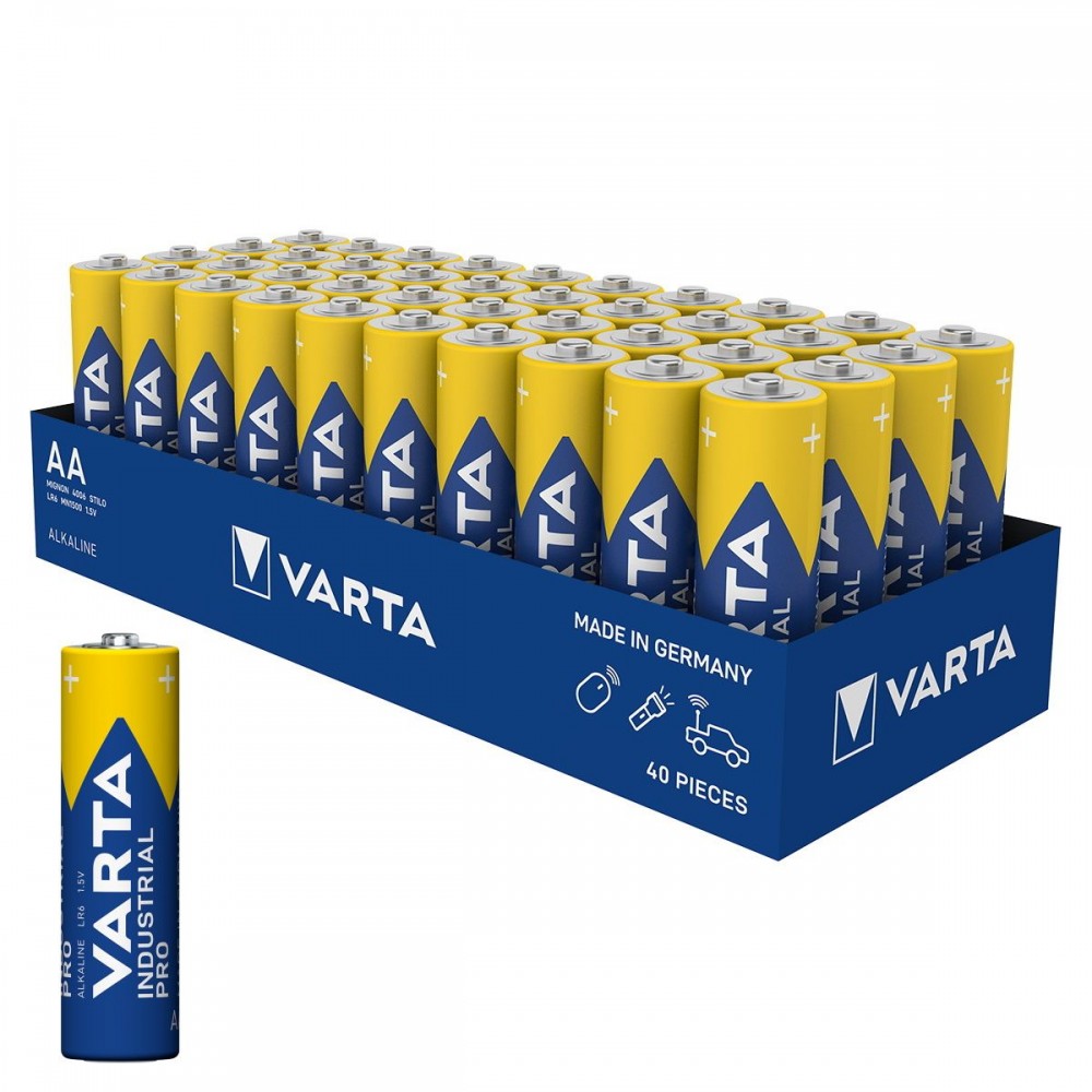 Varta Industrial Pro AA alkalinės baterijos tiekiamos 40 vnt. pakuotėje ir užtikrina patikimą energijos šaltinį pramoniniams ir kasdieniams įrenginiams. Kiekvienos baterijos įtampa yra 1.5V, matmenys 50.5 mm x 14.5 mm, o svoris apie 23 g.