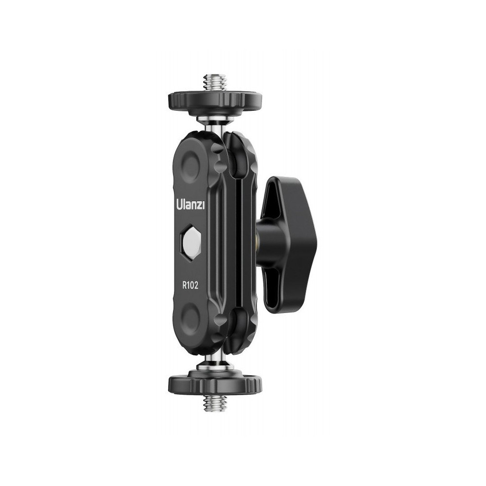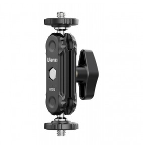 Ulanzi R102 tvirtinimo kronšteinas yra dvipusis laikiklis su rutulinėmis galvutėmis, kurios užsifiksuoja viena rankenėle. Tai leidžia patogiai sumontuoti įvairius foto ir vaizdo priedus ant fotoaparato dėklo arba suderinamo tvirtinimo bėgelio