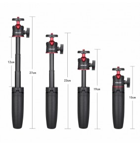 ULANZI MT-08 yra mini tripodas, kuris sujungia stalo tripodą ir selfie lazdelę. Jis turi kamuoliuką su 1/4" tvirtinimo sriegiu ir maksimalų aukštį, kuris yra 24 cm, kai visiškai ištemptas.