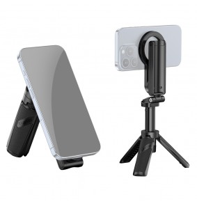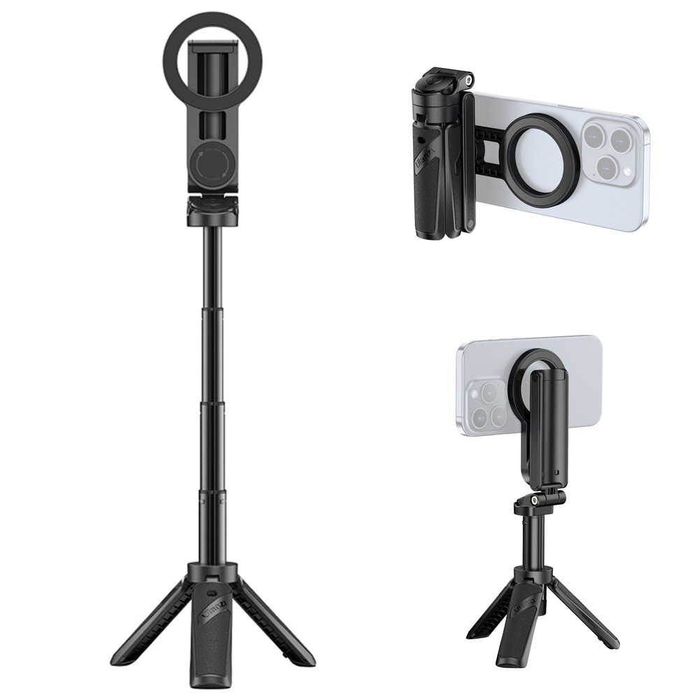 ULANZI JJ03 yra 3-in-1 MagSafe triPodas iPhone'ams, turintis selfie lazdelę, stalą triPodą ir rankeną. Jame yra nuimamas Bluetooth nuotolinio valdymo pultas, aukščio reguliavimas nuo 215 iki 400 mm ir jis palaiko iki 500 g apkrovą.