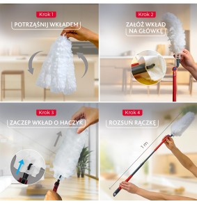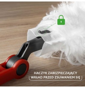 Vileda šluota turi ilgą, teleskopinę rankeną, užtikrinančią ergonomišką naudojimą ir lengvą valymą. Ji apima vieną Flex&Catch pakeitimą ir yra sukurta patogiam laikymui su pakabinimo anga.