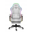 HUZARO FORCE 4.7 RGB Balta ŽAIDIMŲ KĖDĖ pasižymi audiniu aptraukta sėdyne, reguliuojamu atlošu ir palaiko maksimalų vartotojo svorį iki 140 kg. Ji turi RGB apšvietimą, pasvirimo dizainą ir komplektuojama su nuotolinio valdymo pultu patogiam naudojimui.