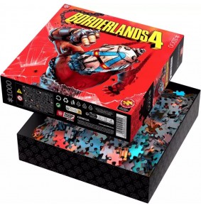 Puzzle Good Loot Gaming - Borderlands 4 turi 1000 detalių ir yra tinkamas nuo 14 metų. Jo matmenys yra 480 mm pločio ir 680 mm aukščio, su saugos įspėjimais dėl mažų dalių.
