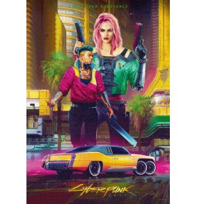 1000 dalių dėlionė su Kitsch Stiliaus dizainu iš Cyberpunk 2077. Rekomenduojama nuo 12 metų, matmenys: 480 mm pločio ir 680 mm aukščio.