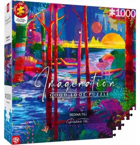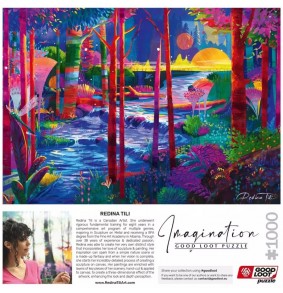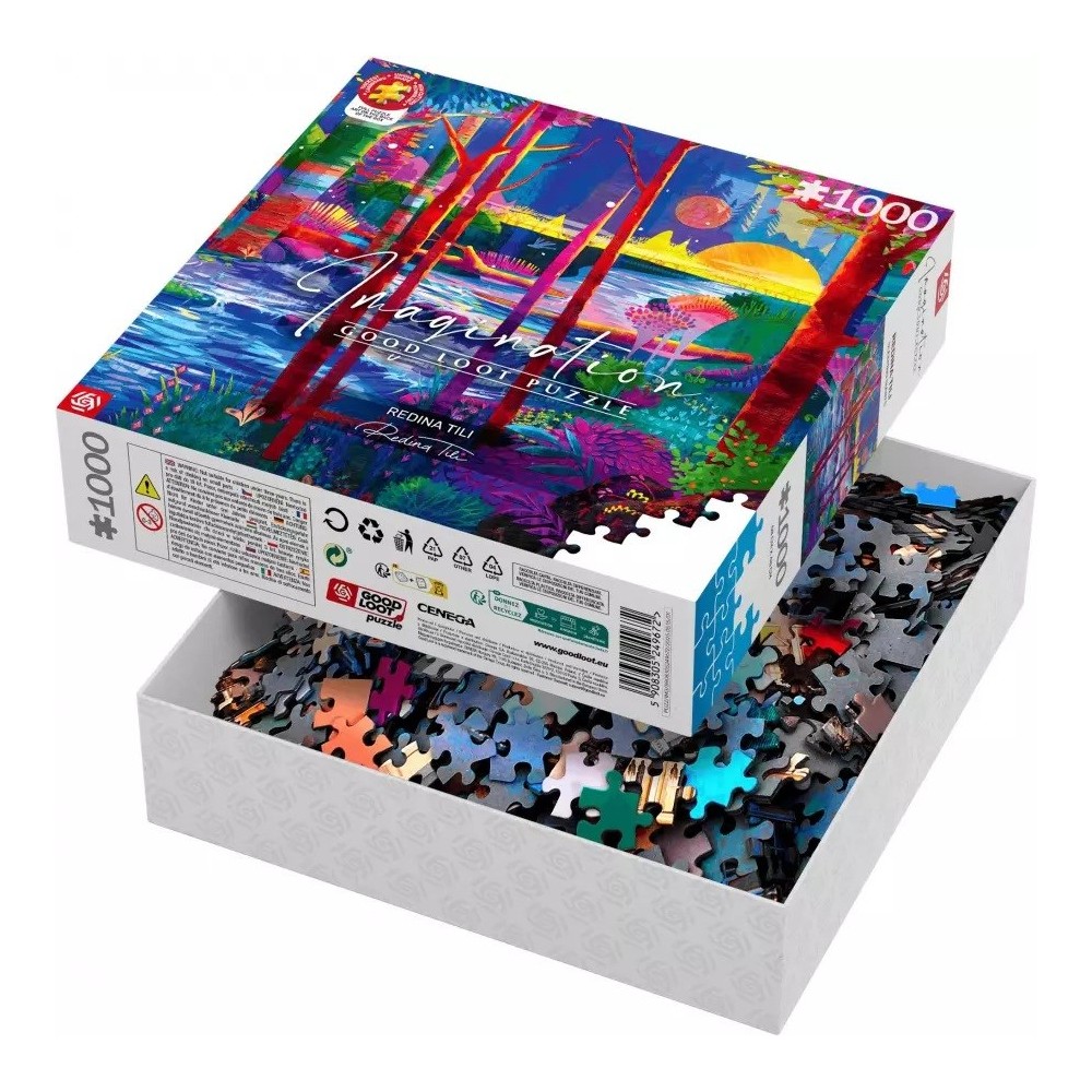Puzzle Good Loot Imagination - Redina Tili: Miegantys Milžinai turi 1000 dalių ir tinka nuo 12 metų. Jo aukštis yra 480 mm, o plotis 680 mm, su įspėjimu apie mažas dalis, netinkamas vaikams iki 3 metų.