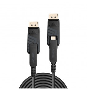 20m ilgio pluošto optinis hibridinis Mini DisplayPort 1.4 kabelis palaiko maksimalų 7680x4320@60Hz raišką ir 32.4Gbit/s pralaidumą. Jis turi atlenkiamas jungtis, auksu padengtus kontaktus ir veikia temperatūros diapazone nuo 0°C iki 50°C.