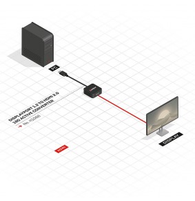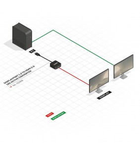 Prijungia DisplayPort šaltinį prie HDMI ekrano su maksimaliu 3840x2160 raiška 60Hz. Palaiko HDCP 2.2 ir turi 18Gbps pralaidumą.