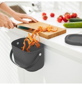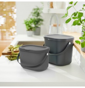 ROTHO Albula atliekų rūšiavimo konteineris turi 3.2 litrų talpą ir pagamintas iš perdirbto plastiko antracito spalvos. Jame yra pakabinimo anga patogiam laikymui, o jo matmenys yra 147 mm aukščio, 222 mm pločio ir 172 mm gylio.
