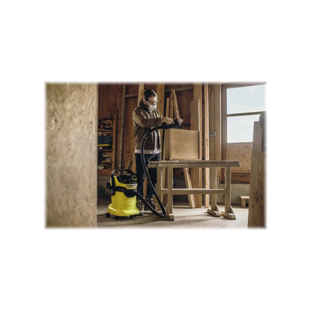 Kärcher WD 5 P V-25 dulkių siurblys turi 25 litrų plastikinį indą ir 1100 vatų galingumą. Jame yra automatinė įjungimo/išjungimo kištukinė jungtis elektriniams įrankiams, patentuota filtro nuėmimo sistema ir praktiška pūtimo funkcija.
