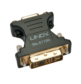 Formuotas plastikinis DVI-A Male į 15-pin VGA Female adapteris su nikelio danga jungtimis ir auksu padengtais kontaktais. Įrengtas su užrakinimo varžtais ir laikikliais, jo matmenys yra 4 x 3 x 1.5 cm, o garantija galioja 2 metus.