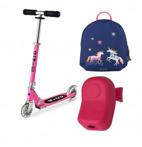 Micro Sprite rožinis LED paspirtukas skirtas vaikams nuo 5 iki 12 metų, su reguliuojamo aukščio vairo, kuris svyruoja nuo 63 cm iki 95 cm. Rinkinys apima Micro Rocket Light, kad būtų užtikrintas matomumas važiuojant.