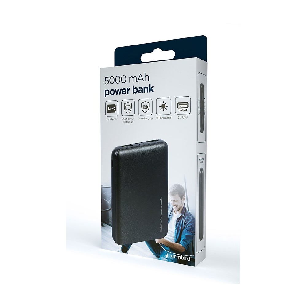 Gembird PB05-02 power bank turi 5000 mAh talpą ir du USB Type-A išvesties prievadus. Jame yra apsaugos nuo perdegimo, perkraunimo ir trumpojo jungimo funkcijos, o įkrauti galima per Micro-USB arba USB Type-C.