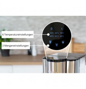 Unold karšto vandens dozatorius Ava turi 2600W galią ir 2.5L talpą. Jis turi lietimui jautrų ekraną, šešias temperatūros nustatymų galimybes ir nuimamą vandens baką.
