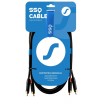 Aukštos kokybės RCA į RCA kabelis, sukurtas garso įrenginiams, pasižymintis tvirtu juodu išoriniu apvalkalu ir tiksliais jungtimis.