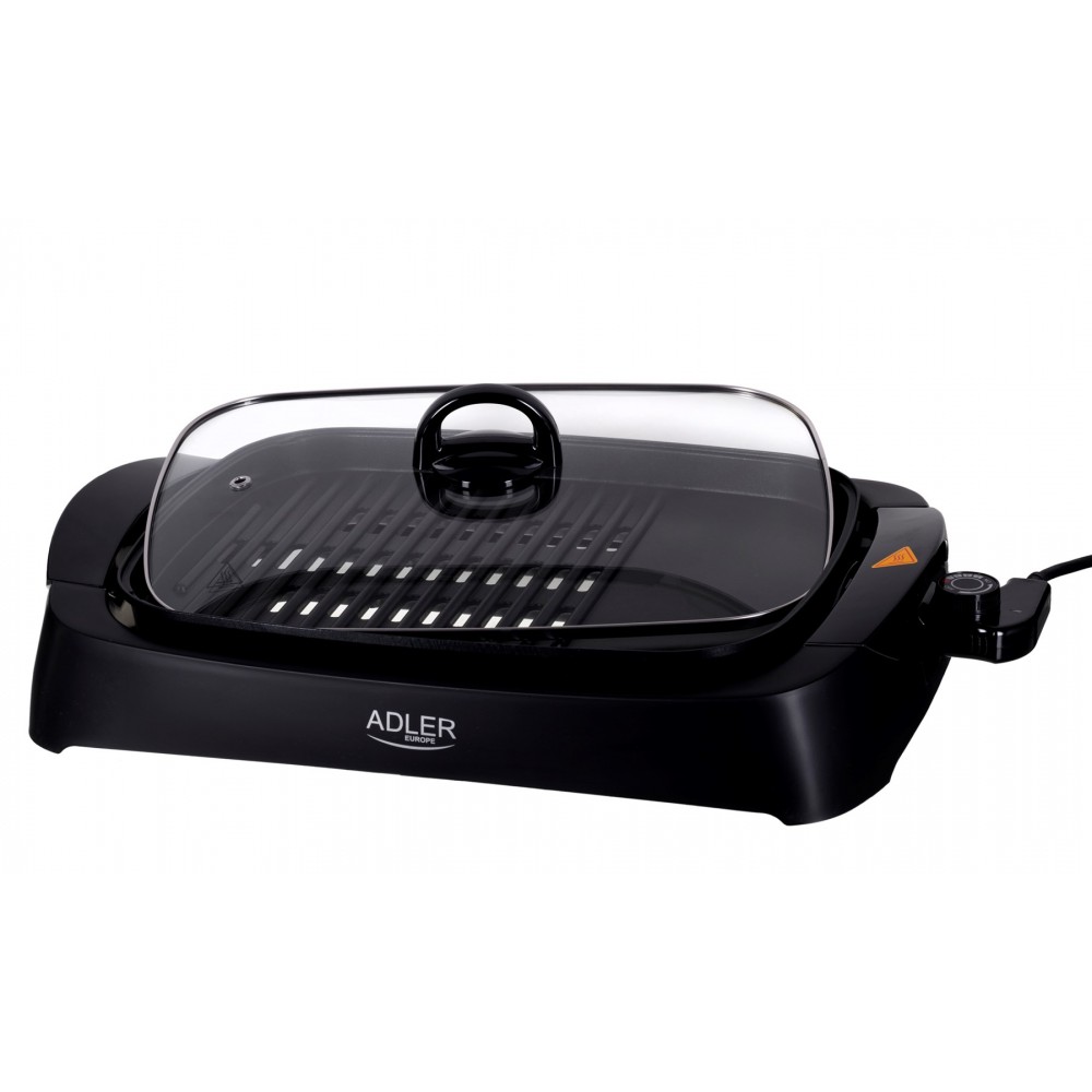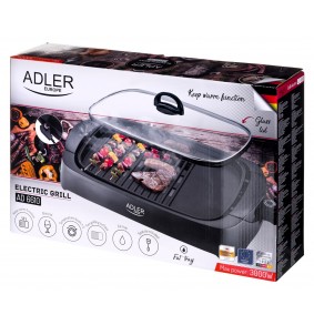 Adler AD6610 yra elektrinis grilis su stačiakampiu, nelipniu paviršiumi, apjungiančiu groteles ir keptuvę. Jis turi patogų dangtį ir 5 galios lygius, kurių bendra galia siekia 3000 W.