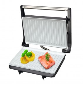 Esperanza EKG013 keraminis kontaktinis grilis turi kepimo paviršių 230 x 145 mm ir veikia 850W galia. Jis turi nelipnią danga, reguliuojamą termostatą ir lengvai valomą dizainą su šaltomis rankenomis.