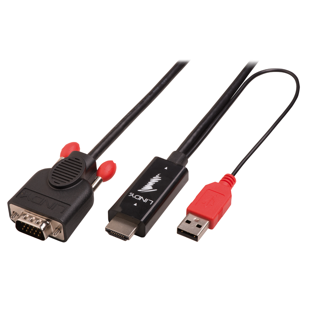 1m HDMI į VGA adapterio kabelis sujungia HDMI įrenginį su VGA ekranu, maksimalus raiškos lygis yra 1920x1200. Kabelis turi nikelio danga padengtus jungtis ir PVC apvalkalą, palaikantis 4.95Gbps pralaidumą.