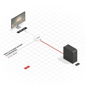 Prijungia vieną HDMI šaltinį prie DisplayPort ekrano su maksimaliu 3840x2160 raiška 30Hz. Palaiko 7.1 LPCM skaitmeninį garsą ir turi 10.2Gbps pralaidumą.