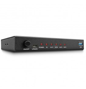 Paskirsto HDMI® signalus į keturis ekranus su maksimaliu 3840x2160@60Hz raiška. Palaiko HDMI® 1.4 ir 10.2G pralaidumą.