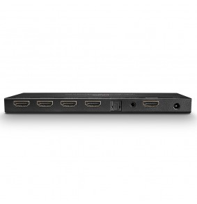Platinama HDMI® 2.0 signalus per 4 ekranus, palaikant maksimalų 4096x2160@60Hz raišką. Splitter taip pat ištraukia skaitmeninį arba analoginį garsą per atskirus garso lizdus, įskaitant Toslink ir 3.5mm.
