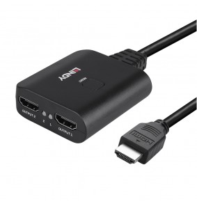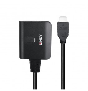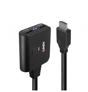 Paskirsto vieną HDMI signalą dviem ekranams su maksimalia išvesties raiška 3840x2160 prie 60Hz. Palaiko HDMI 2.0, 18Gbps pralaidumą, ir turi reset mygtuką bei downscaler funkciją.