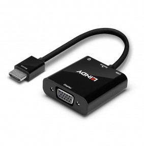 Prijungia HDMI įrenginį prie VGA ekrano ir 3.5mm garso įrenginio, maksimali rezoliucija 1920x1080. Įtrauktas USB Micro B lizdas maitinimui ir palaiko garso perdavimą.