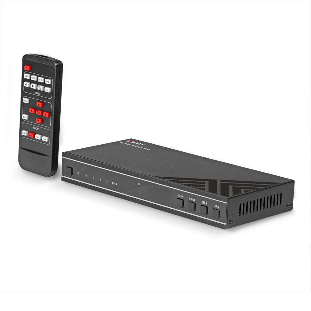 Integruoja 4 atskirus 4K60 HDMI signalus į vieną ekraną, palaikydamas rezoliucijas iki 3840 x 2160@60Hz. Funkcijos apima PiP, PbP režimus ir kelias garso išvesties parinktis.