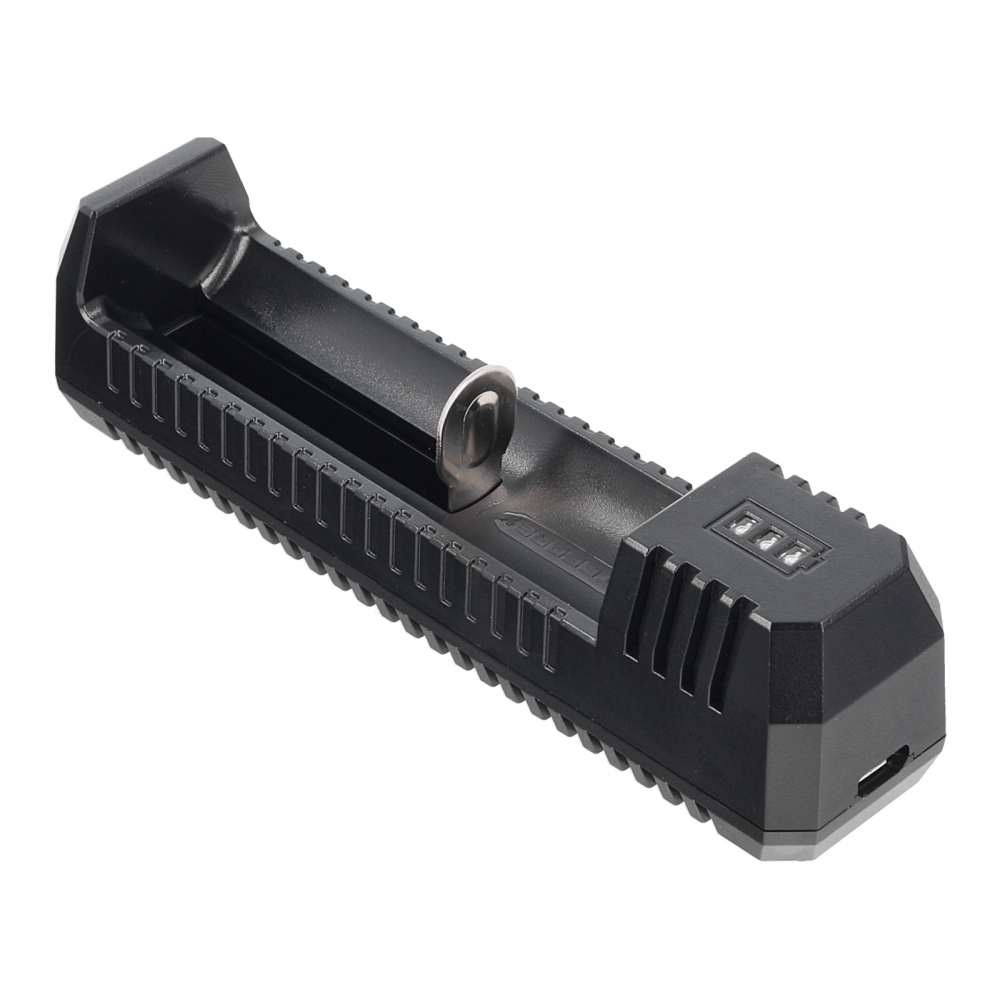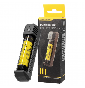 Akumuliatoriaus įkroviklis - Nitecore UI1 Intelligent Universal USB Charger. Šis USB įkroviklis yra labai kompaktiško dizaino ir yra optimalus naudoti keliaujant. Jis įkrauna daugumą ličio jonų baterijų ir daugumą ličio jonų IMR baterijų. Funkcijos: Ličio jonų akumuliatoriaus įkroviklio maitinimas per USB su USB išvestimi, įmontuota intelektuali energijos valdymo sistema, automatinis įvesties galios aptikimas ir įkrovimo išvesties paskirstymas. Taip pat prioritetinis režimas, skirtas įkrauti pagrindinę bateriją arba įkrauti per USB išvestį. Su duomenų perdavimu per USB ir naudingu kabelio lizdu galinėje dalyje 3,0 ir 3,5 mm USB kabeliams. Su atvirkštinio poliškumo apsauga.