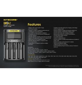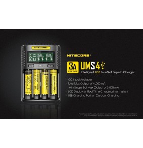 Nitecore UMS2 yra išmanusis USB 2 lizdų puikus baterijų įkroviklis. Nitecore UMS2 turi QC įvesties funkciją, kuri įgalina bendrą maksimalią 4000 mAh išvestį ir 3000 mAh vieno lizdo maksimalią išvestį. Ir Nitecore UMS2 yra plačiai suderinamas su beveik visomis IMR / Li-ion / LiFePO4 baterijomis. Įrengtas puikus LCD ekranas, „Nitecore UMS2“ pateikia įkrovimo informaciją realiuoju laiku, kad įkrovimas būtų geresnis. Pagal baterijos tipą ir talpą UMS2 automatiškai pasirinks vieną iš trijų įkrovimo režimų (CC, CV ir -dV / dt).