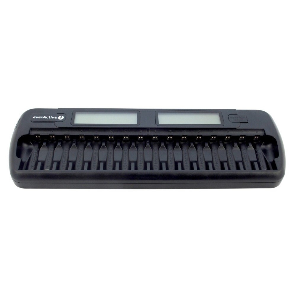 Patogiai įkraukite savo prietaisus su everActive NC-1600 įkrovikliu! Jis leidžia vienu metu įkrauti iki 16 Li-Ion baterijų, užtikrindamas patikimą našumą ir pasiruošimą veiksmui.
