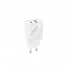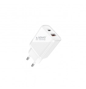 SAVIO LA-04 yra greito įkrovimo energijos tiekimo 3.0 įkroviklis, skirtas naudoti patalpose, su USB Tipo A ir Tipo C prievadais.