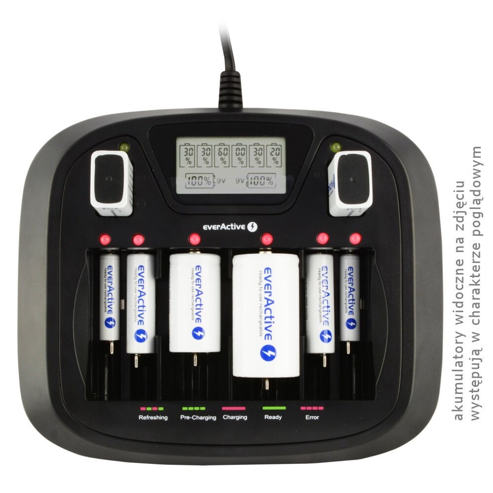 Everactive NC-900U yra universalus įkroviklis, skirtas namų baterijoms. Ergonomiškas dizainas automatiškai identifikuoja baterijų dydžius, užtikrindamas patogų naudojimą.