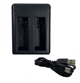 Dvigubas įkroviklis GoPro AHDBT401 baterijoms su LED įkrovimo indikatoriais. Komplekte yra USB Type-A į micro USB kabelis, suderinamas su GoPro Hero 4 modeliais.
