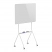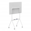 Magnetinė sauso trinimo lentelė balta, matmenys 1190x790mm, su laisvai stovinčiu dizainu ir ratukais mobilumui. Įeina lentynėlė papildomam įrangai.