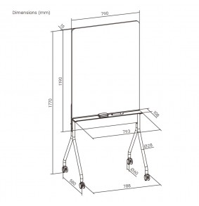 Ergo Office mobilus sauso trinimo lentelė yra laisvai stovinti, vienpusė lenta su balta magnetine danga ir matmenimis 1190x790mm. Ji turi ratukus lengvam judėjimui ir apima lentyną papildomai įrangai.
