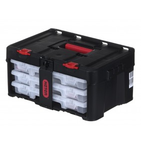 Lengvai organizuokite savo įrankius su KETER Stack'N'Roll 3 Organizatoriais. Pagaminta iš patvaraus technopolimero, ši elegantiška juoda įrankių dėžė turi tris skyrius, saugų užrakinimo mechanizmą ir patogią rankeną lengvam transportavimui.