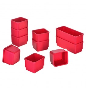 Trijų stumdomų saugojimo dėžių rinkinys iš technopolimero, idealiai tinka daiktams saugoti ir transportuoti.