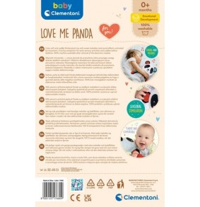 Clementoni Love me Panda yra interaktyvus žaislas, tinkantis tiek berniukams, tiek mergaitėms nuo 0 metų. Jį galima plauti rankomis, todėl jis tinka naudoti tiek viduje, tiek lauke.