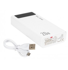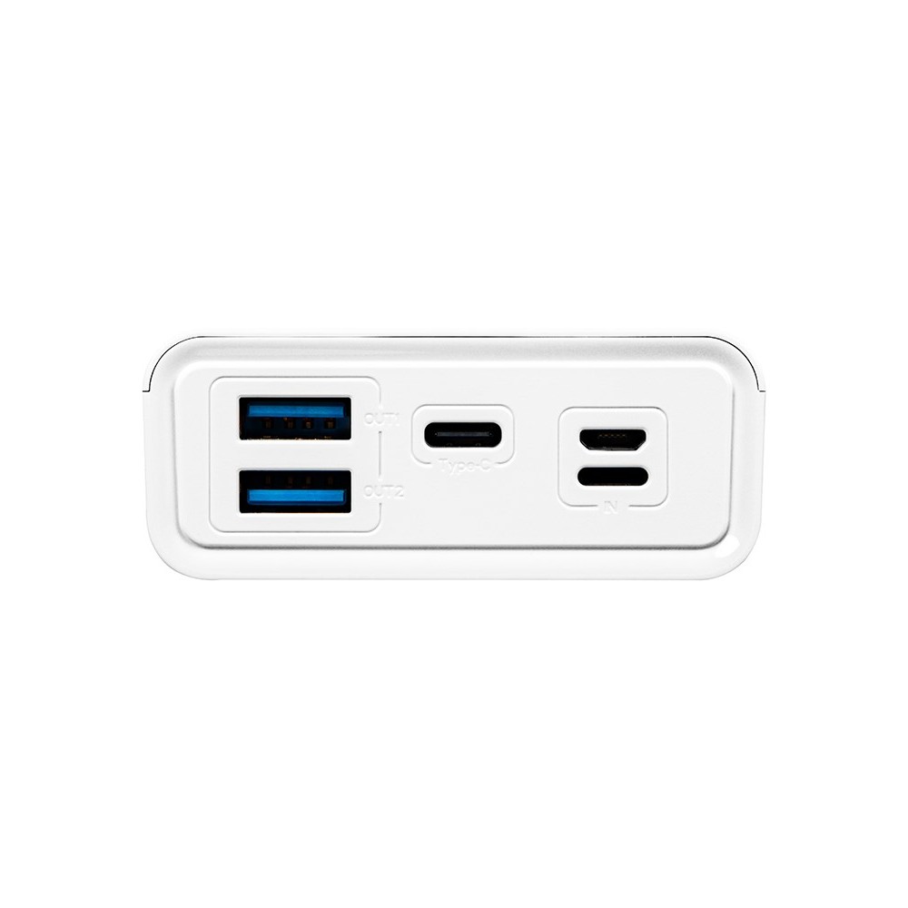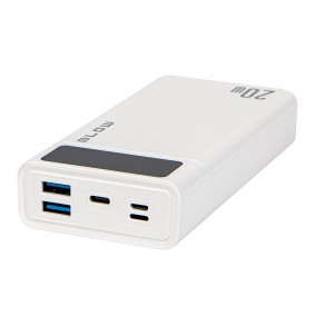 Power Bank turi 20000mAh talpą ir palaiko greitą įkrovimą su bendra išėjimo galia 20W. Jame yra keli lizdai, leidžiantys vienu metu prijungti iki keturių įrenginių, ir jis apima saugos apsaugas nuo perkrovos ir perkaitimo.
