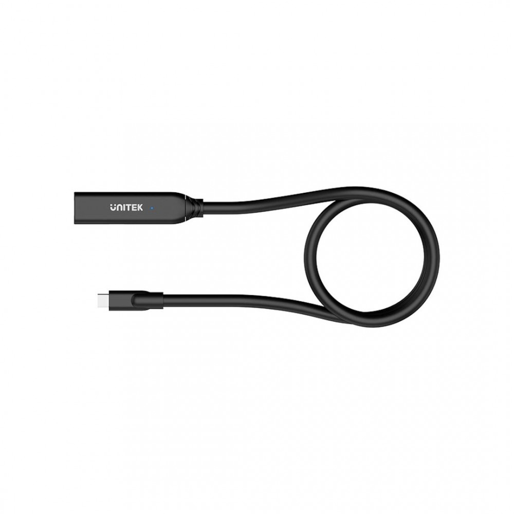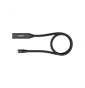 UNITEK U1335ABK01 yra 5 metrų ilgio USB-C prailginimo kabelis su dviem vyriškais USB-C jungtimis. Jis pasižymi tiesiu jungties formatu ir yra juodos spalvos.