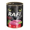 Dolina Noteci Rafi Cat yra drėgnas, be glitimo ir be grūdų maistas suaugusioms katėms, pagamintas pagal DOLINA NOTECI Rafi seriją. Pagrindinis skonis - veršiena. Produktas neturi dirbtinių spalvų ir tinka visoms katėms.