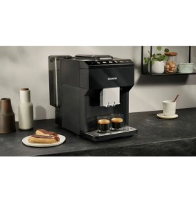 Siemens EQ.500 TP513R09 yra pilnai automatinis espresso aparatas su integruotu keraminiu malūnėliu ir 1.9 L vandens talpa. Jame yra programuojami nustatymai kavos stiprumui ir temperatūrai, taip pat pieno talpa automatiškai pieno paruošimui.