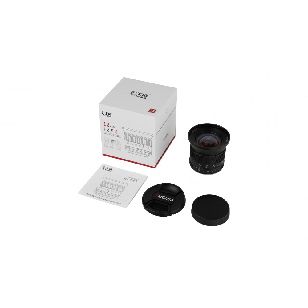 7Artisans 12mm F2.8 II yra plataus kampo objektyvas, sukurtas Canon EOS-R kameroms. Jis turi 12mm židinio nuotolį, F2.8 diafragmą ir 121 laipsnio matymo lauką.